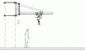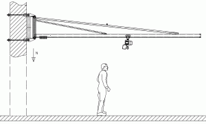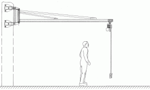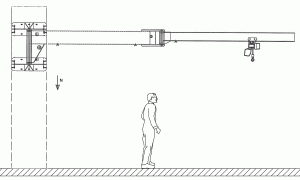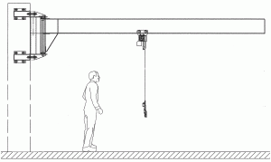 Gru a mensola tipo MT in trave a sbalzo con staffaggio pilastro a C